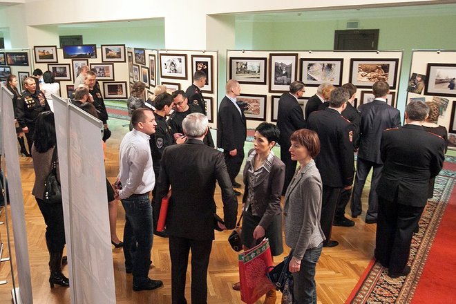 На выставке представлены лучшие работы старшего уполномоченного по особо важным делам специального отряда быстрого реагирования МВД по Карачаево-Черкесской Республике, подполковника полиции Андрея Ленева, погибшего при исполнении служебного долга. «Также экспонируются лучшие снимки участников фотоконкурса МВД России «Открытый взгляд», выполненные с 2009 по 2013 год и посвященные службе в органах внутренних дел и внутренних войсках», – отметил член президиума «ОФИЦЕРОВ РОССИИ» Вячеслав Калинин, присутствовавший на церемонии.