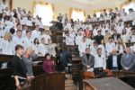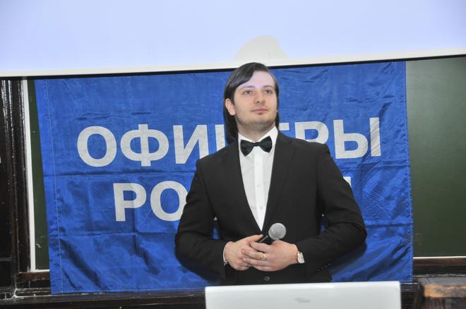 В начале встречи известный саратовский оперный певец Влад Захаров исполнил несколько патриотических песен, в том числе знаменитую «Офицеры», которую зал встретил стоя.