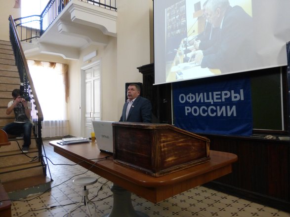Перед собравшимися выступил региональный представитель «ОФИЦЕРОВ РОССИИ» по Саратовской области Владимир Незнамов. Он поделился жизненным опытом, рассказал о целях и задачах нашей общественной организации, обосновал необходимость активной жизненной позиции и призвал вступать в ряды «ОФИЦЕРОВ РОССИИ». Во встрече также приняли участие члены президиума регионального отделения Владимир Кудинов, Евгений Малявко, Антон Демченко.
