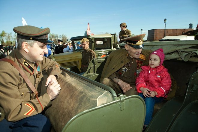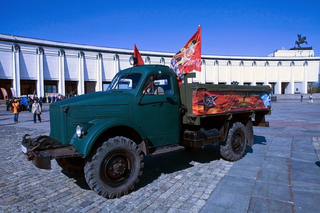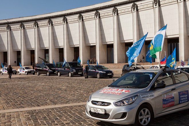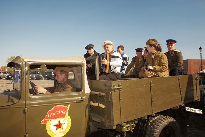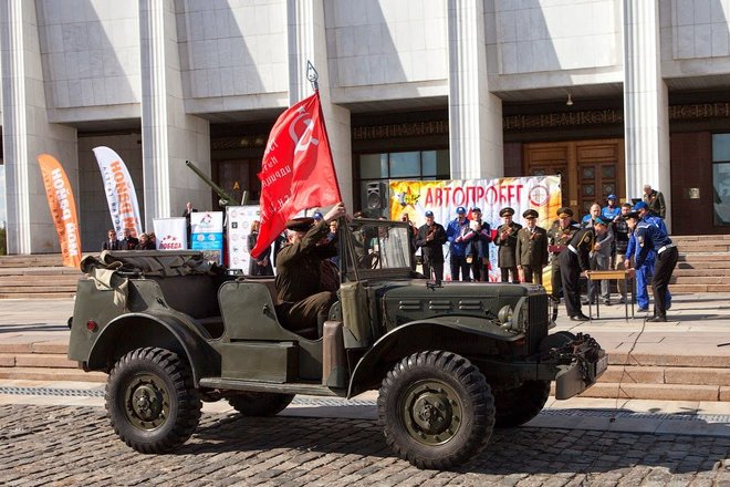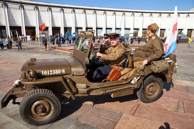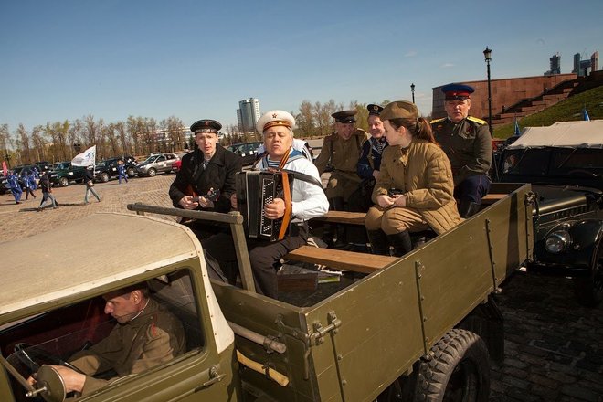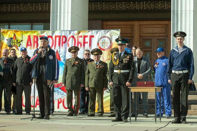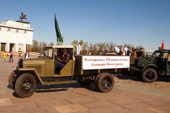 Рано утром на площади перед Центральным музеем Великой Отечественной войны выстроились около 100 экипажей: автомобили оборонного общества, джипы спортклубов, ретроавтомобили и мотоциклы. Среди раритетной техники был автомобиль «Додж WC-56», на котором маршал Советского Союза Георгий Жуков, приехавший в известную 82-ю американскую воздушную дивизию, принимал парад летчиков-союзников (машина эта принадлежала командиру дивизии Гавелу). Еще одним ретроавто была легендарная «полуторка», обеспечивающая продовольствием осажденный Ленинград по «Дороге жизни».