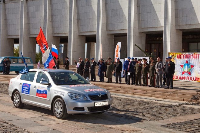 26 апреля в Москве на Поклонной горе торжественно стартовал всероссийский патриотический автопробег «По дорогам Великой Победы», организованный ДОСААФ России, спортивным клубом JeepFest, клубом «Уаз Патриот Легенда», Союзом мотоциклистов России и клубом «Авега», при поддержке Всероссийских государственных лотерей «Победа».