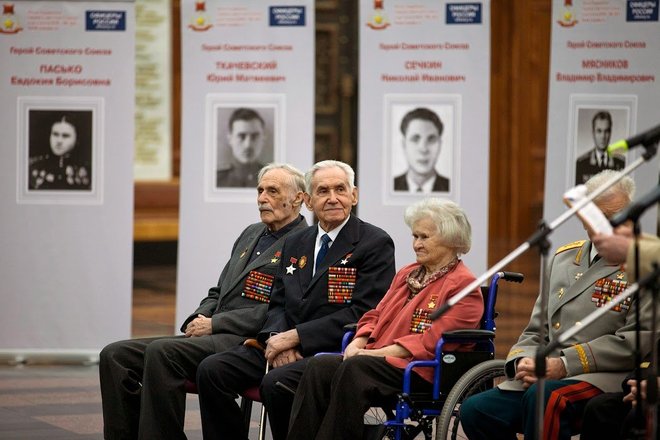 7 мая в Главном Зале Боевой Славы Центрального музея Великой Отечественной войны 1941-1945 гг. на Поклонной горе состоялась торжественная церемония чествования Героев Советского Союза, удостоенных этого высокого звания в годы войны.