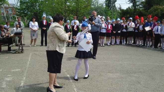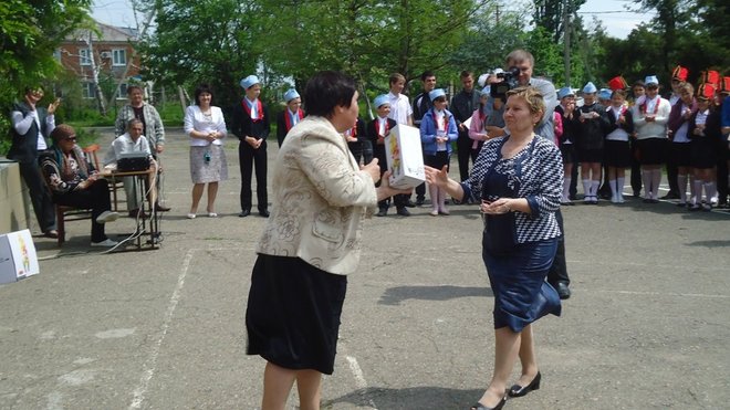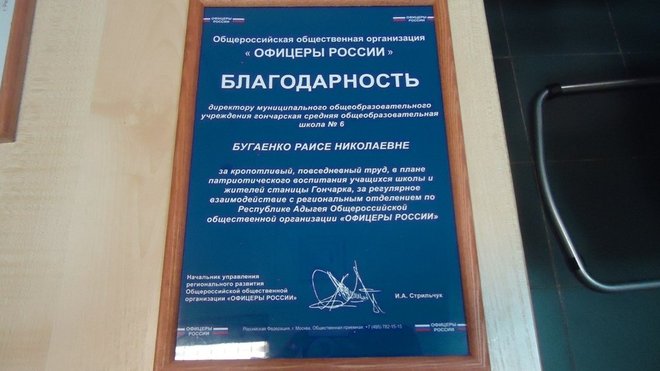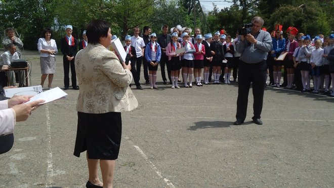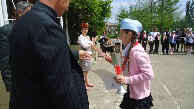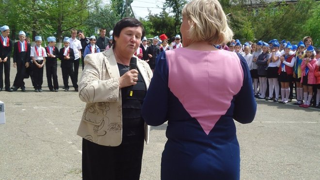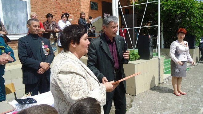 Представители регионального отделения выразили благодарность за кропотливый, повседневный труд в патриотическом воспитании директору школы Раисе Бугаенко, а победителям конкурса вручили грамоты.