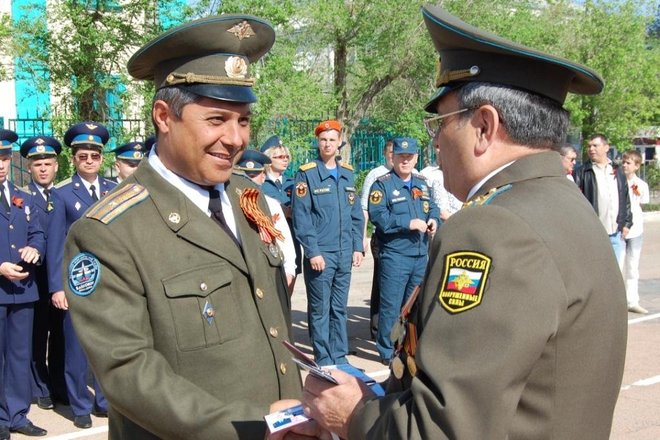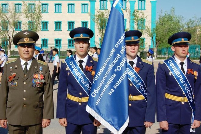 В единый строй сотрудников силовых структур Байконура влилась и «коробка» регионального отделения «ОФИЦЕРОВ РОССИИ» под руководством регионального представителя нашей организации Петра Майданова. В ее составе были молодые офицеры филиала ФГУП «ЦЭНКИ» – «Космический центр «Южный» (директор – Михаил Варданян), сотрудники УМЧС (начальник управления – член Президиума регионального отделения организации полковник внутренней службы Андрей Заровский), ветераны Вооруженных сил и МВД.