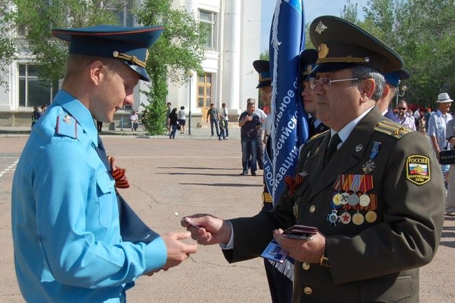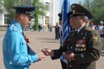 На площади прошла церемония принятия в организацию «ОФИЦЕРЫ РОССИИ» новых членов, на которой Петр Майданов вручил удостоверения и знаки вновь вступившим. Полковникам запаса Михаилу Черешневу и Николаю Окашеву, подполковнику запаса Владимиру Васильеву, капитану МВД Шайяхмету Мыханову были вручены памятные медали, а капитану внутренней службы Владимиру Вороне и майору запаса Розымурату Розыеву – грамоты.