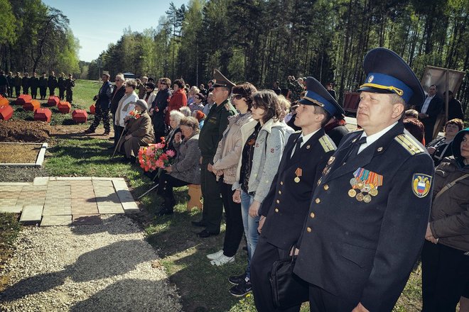 В церемонии приняли участие представители Главного управления уголовного розыска МВД России, УМВД по Калужской области, областного Министерства, туризма и молодежной политики, администрации Юхновского района, РПЦ, ветераны войны, поисковики, курсанты Московского университета МВД, школьники. «ОФИЦЕРОВ РОССИИ» на мероприятии представлял член Президиума, председатель Совета ветеранов ГУУР МВД России Николай Исаев.