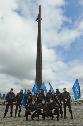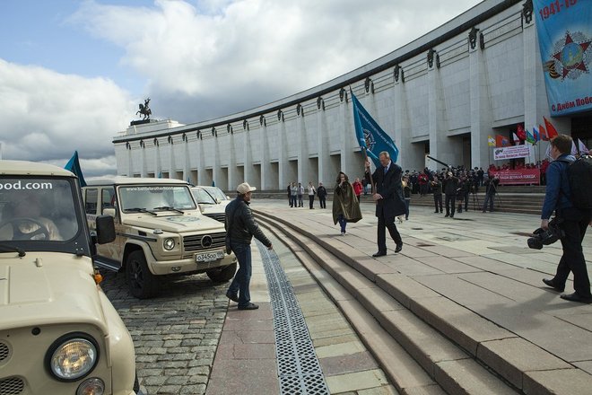 После команды «По машинам. Вперед!», под звуки торжественного марша «Прощание славянки», символизируя старт, колонна автомобилей направилась к памятнику Воинам-интернационалистам на Поклонной горе.