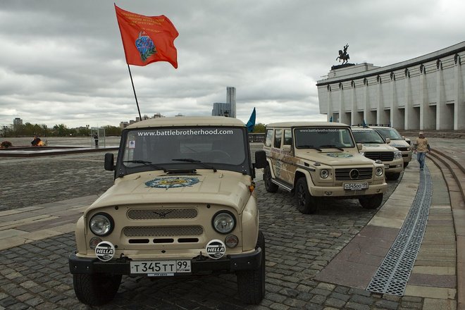 Старт с Поклонной горы колонны автомобилей, на бортах которых эмблемы «Боевое братство – Battle Brotherhood» и карта маршрута, проходящего по всей планете, символизирует начало целого комплекса мероприятий, которые будут осуществлены в течение нескольких лет. Автопробег – один из важных этапов общественного движения.