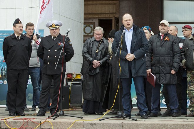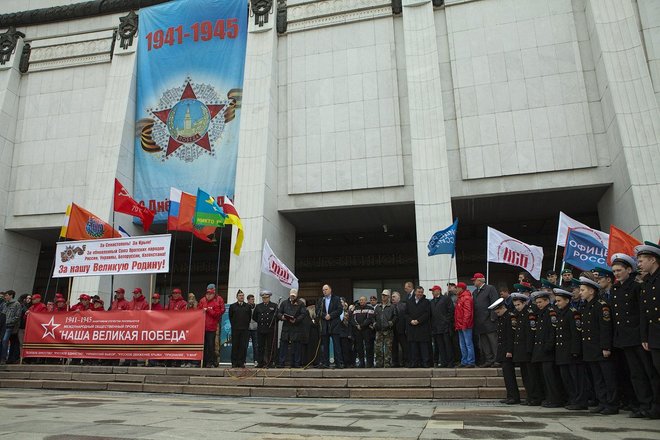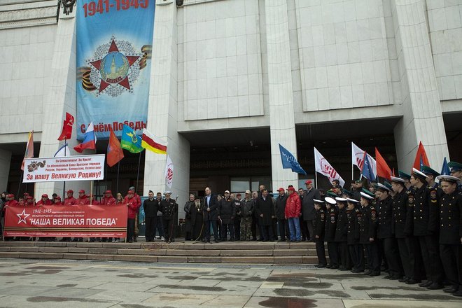 Перед гостями мероприятия выступил руководитель общественного проекта «Наша Великая Победа» Олег Слюсаренко. Он очень эмоционально рассказал о ситуации в Украине и Севастополе, свидетелями которой стали участники автопробега, а также напомнил о героических страницах в истории нашей страны, проведя параллели между освобождением Крыма от фашистских захватчиков и теми событиями, которые сейчас происходят в братской нам республике.