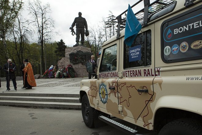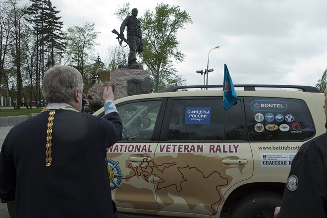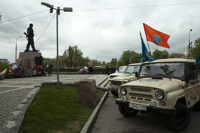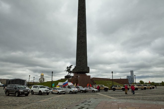 После команды «По машинам. Вперед!», под звуки торжественного марша «Прощание славянки», символизируя старт, колонна автомобилей направилась к памятнику Воинам-интернационалистам на Поклонной горе.
