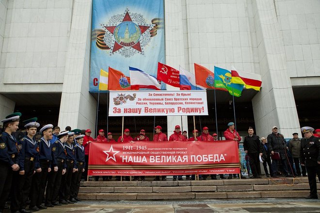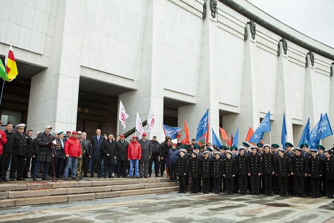 Перед гостями мероприятия выступил руководитель общественного проекта «Наша Великая Победа» Олег Слюсаренко. Он очень эмоционально рассказал о ситуации в Украине и Севастополе, свидетелями которой стали участники автопробега, а также напомнил о героических страницах в истории нашей страны, проведя параллели между освобождением Крыма от фашистских захватчиков и теми событиями, которые сейчас происходят в братской нам республике.