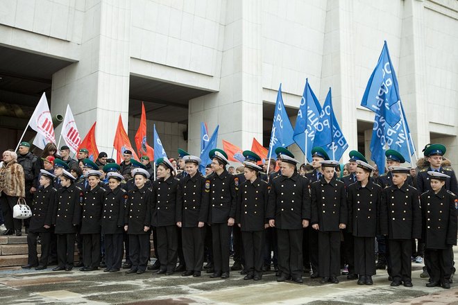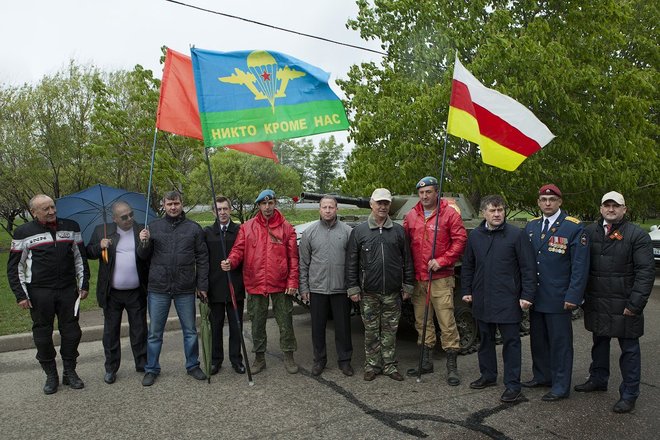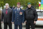 С флагами «Боевого братства», Союза десантников России, «ОФИЦЕРОВ РОССИИ» и других общественных организаций участники встретили колонну автомобилей проекта «Наша Великая Победа», прибывшую из Крыма, и восемь внедорожников марша ветеранов «Боевое братство – Battle Brotherhood».