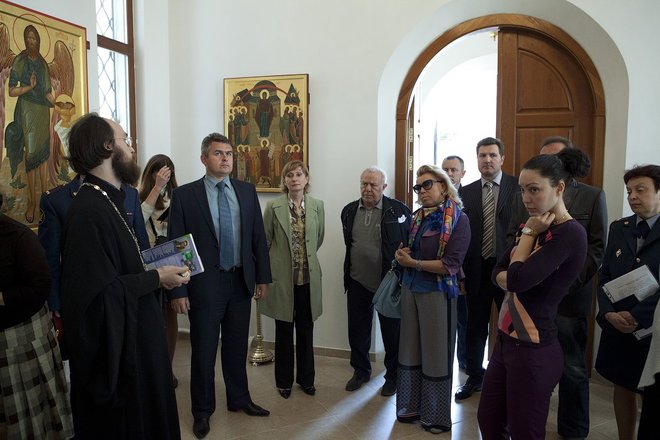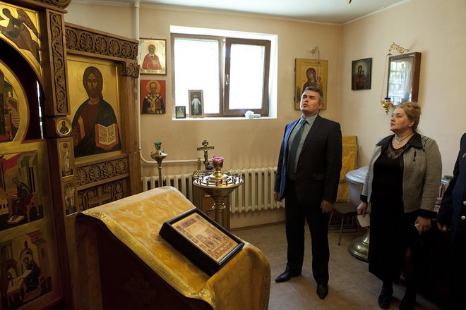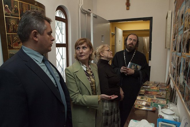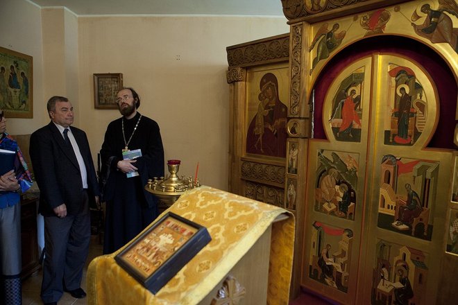 До посещения режимного корпуса члены Совета побывали в Никольском храме, расположенном на территории следственного изолятора. Ранее на территории СИЗО-5, как и в других московских изоляторах действовал небольшой домовой храм, расположенный в одном из режимных корпусов. Настоятелем храма является иерей Иоанн Чураков. Освящение храма совершил в январе текущего года епископ Красногорский Иринарх, а в праздник Рождества Христова Святейший Патриарх Кирилл осуществил визит в учреждение, и в первую очередь он посетил построенный храм Святителя Николая. По мнению отца Иоанна, данный визит стал историческим: «Впервые Предстоятель Русской Православной Церкви в новейшей истории России посетил места заключения» – подчеркнул он.
