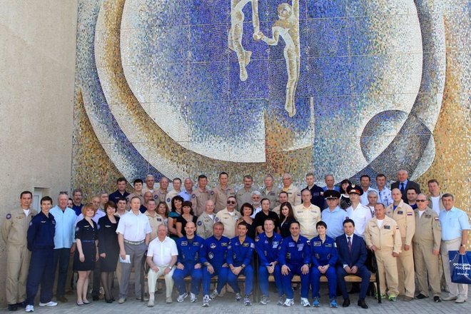 В заключении состоялось традиционное фотографирование космонавтов с членами оперативной группы и гостями.
