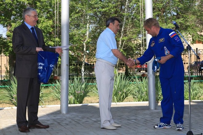 В церемонии, ход которой накануне обсудили летчик-космонавт, Герой Российской Федерации, заместитель начальника ЦПК по подготовке космонавтов – командир отряда космонавтов ЦПК генерал-майор Валерий Корзун, руководитель запусков по пилотируемой программе РКК «Энергия» генерал-майор Владимир Томчук, региональный представитель «ОФИЦЕРОВ РОССИИ» на комплексе «Байконур» Петр Майданов, руководитель регионального отделения нашей организации Евгений Раковский, приняли участие основной и дублирующий экипажи транспортного пилотируемого корабля «Союз ТМА-13М», представители города и космодрома, регионального отделения.