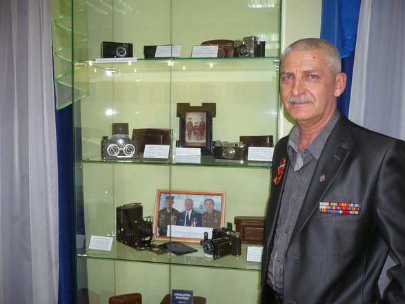 В канун Дня Победы в сыктывкарском Центре культуры открылась выставка старинных фотоаппаратов «Война в объективе». В экспозиции были представлены модели фотоаппаратов – «Смена», «ФЭД-2», «Киев», «Зенит», «Любитель», а также фотографии военных лет жителей Усть-Куломского района Республики Коми. Организатор выставки – региональное отделение «ОФИЦЕРОВ РОССИИ» по Республике Коми. Раритетная техника принадлежит руководителю исполкома нашего отделения, участнику «афганской» войны, ветерану боевых действий на Северном Кавказе Вячеславу Немирову.