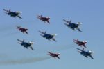 Главная часть праздника – показательные полеты. В арсенале «Стрижей» имеются десятки фигур высшего пилотажа с говорящими названиями – «конверт», «пирамида», «ромб», «стрела», «крест» и так далее. И конечно, же зрители могли увидеть знаменитый «кубинский бриллиант», который «Стрижи» показали в тандеме с «Русскими витязями».