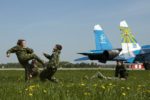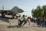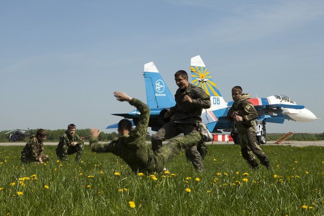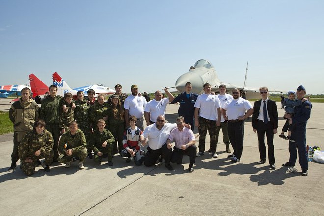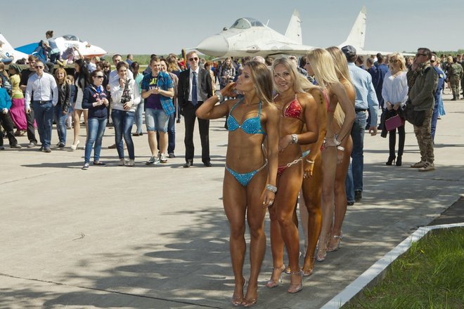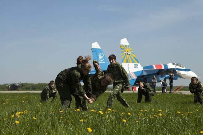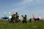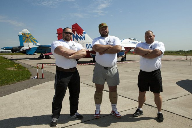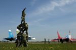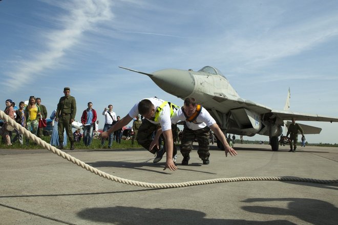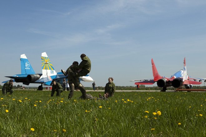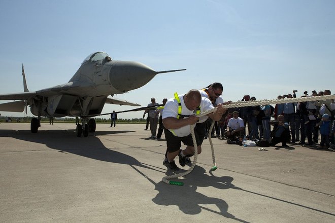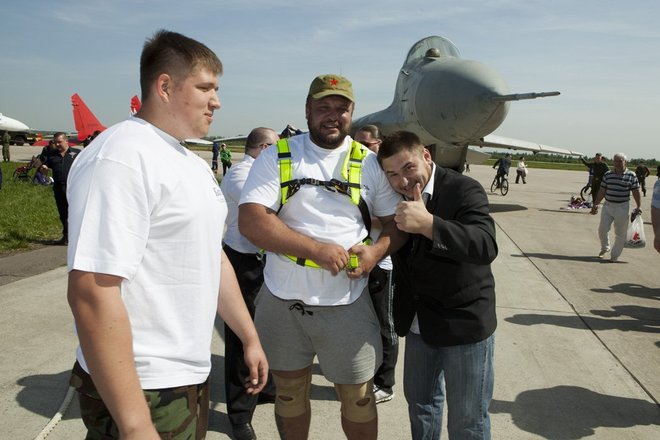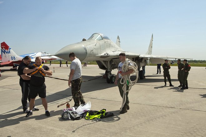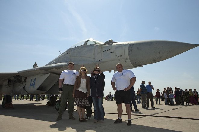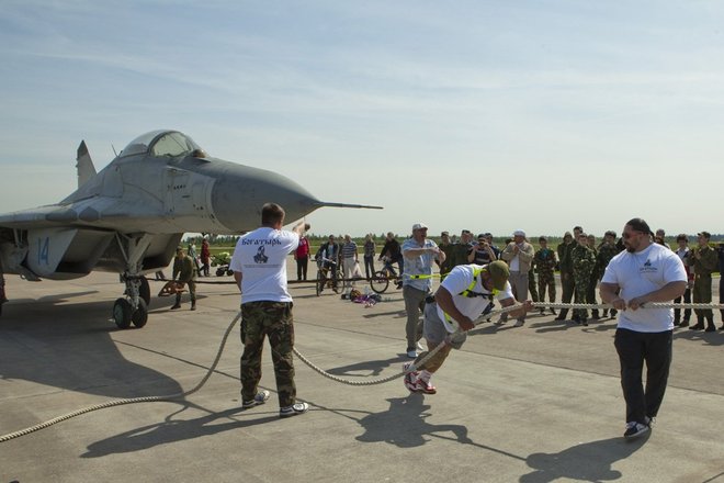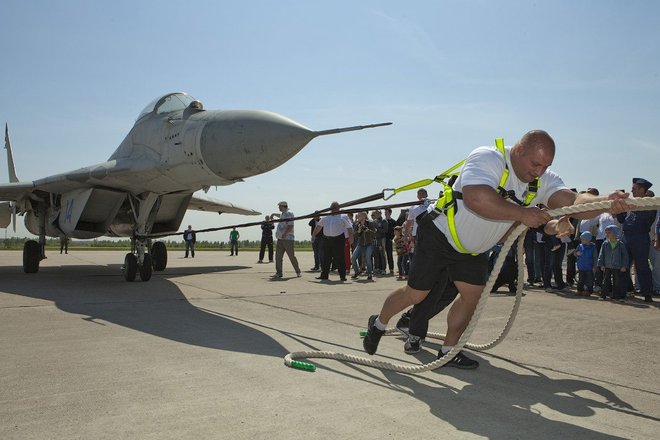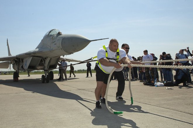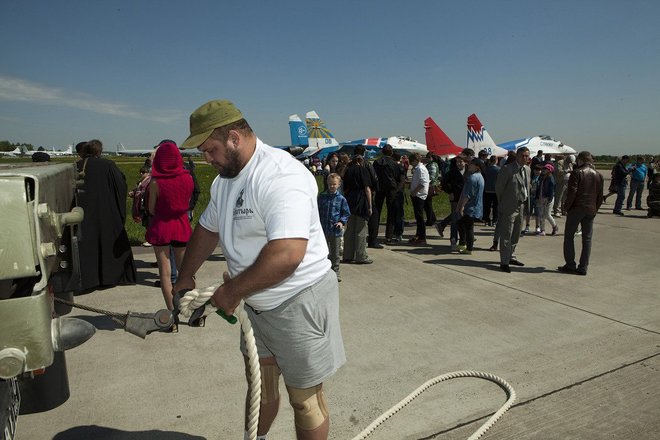 Затем шоу продолжилось на земле. Представители Фонда развития и поддержки спортсменов и организаций по силовому многоборью «Богатырь» продемонстрировали свою богатырскую силу в силовой тяге самолета МиГ-29, а воспитанники патриотических клубов показали зрителям приемы рукопашного боя.