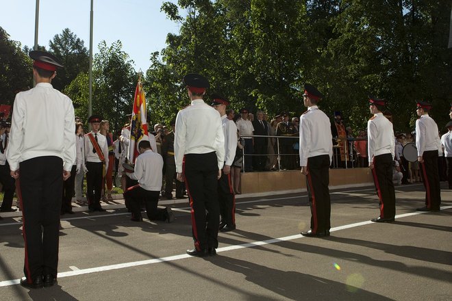 Последний звонок в корпусе прошел в настоящих армейских традициях. Кадеты прошли парадным маршем, продемонстрировав выправку и чеканный шаг, показали приемы владения оружием в строю. Гостей не оставило равнодушными и эффектное шоу барабанщиков. Но, пожалуй, самым трогательным моментом мероприятия стал ритуал прощания со знаменем – у многих на глаза наворачивались слезы. По традиции выспускники высадили дерево на территориии корпуса.