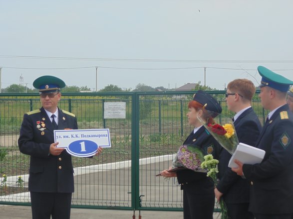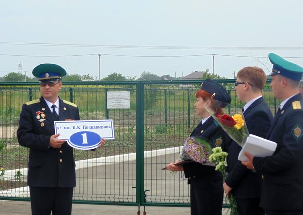 Затем участники мероприятий собрались в одном из районов Гуково, где новой улице было присвоено имя К.К. Подкавырова. Для открытия памятной надписи были приглашены вдова пограничника и двое его сыновей. Один из сыновей по стопам отца стал офицером-пограничником.
