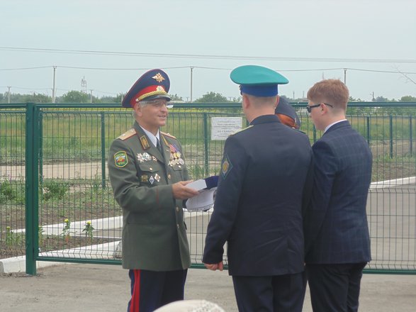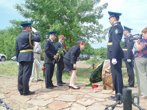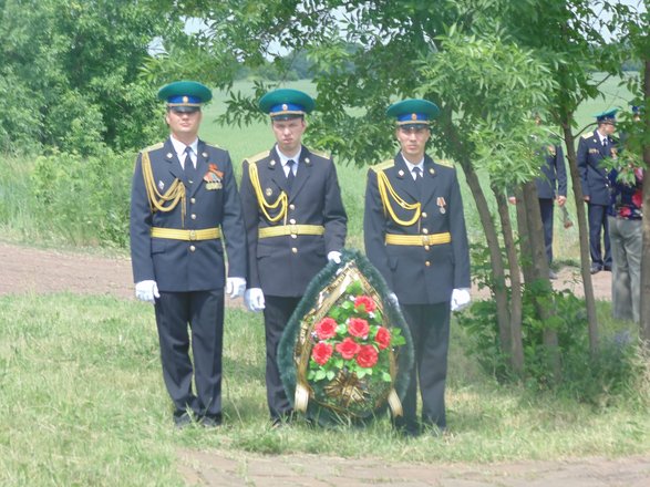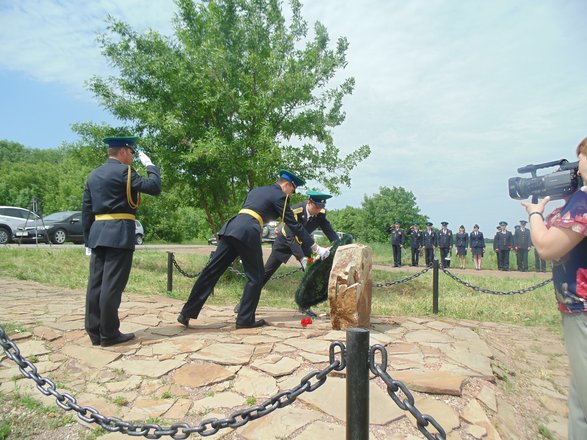 По традиции День пограничника начался с построения личного состава погранотдела у мемориального камня на месте гибели героя-пограничника. К мемориальному камню были возложены венок и живые цветы.