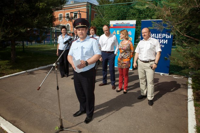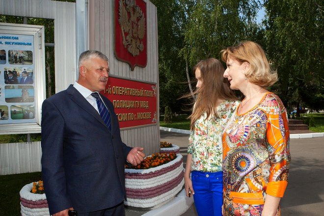 1 июня в 1-ом оперативном полку московской полиции в честь Дня защиты детей по инициативе Координационного женского совета подразделений ГУ МВД России по Москве, при поддержке организации «ОФИЦЕРЫ РОССИИ» состоялась благотворительная акция «Я хочу служить в полиции» для детей сотрудников органов внутренних дел, учащихся общеобразовательных учреждений. Нашу организацию представлял председатель Президиума Антон Цветков, а также члены Совета «ЖЕНЩИНЫ-ОФИЦЕРЫ РОССИИ» – председатель Женского совета, начальник Правового управления главка Марина Астахова и председатель Комиссии по безопасности Мосгордумы Инна Святенко и