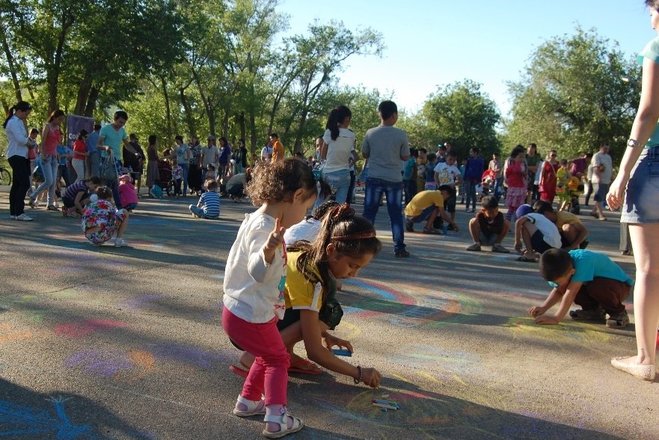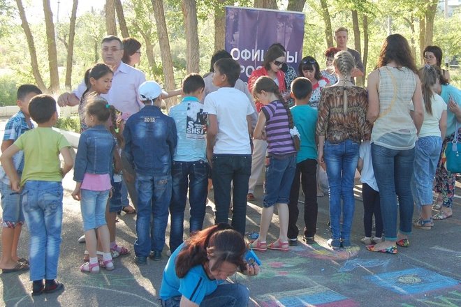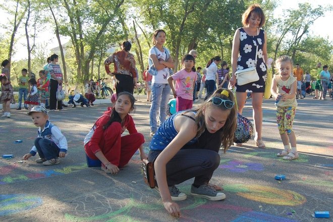 «ОФИЦЕРЫ РОССИИ» на комплексе Байконур организовали конкурсе рисунков на асфальте для маленьких байконурцев