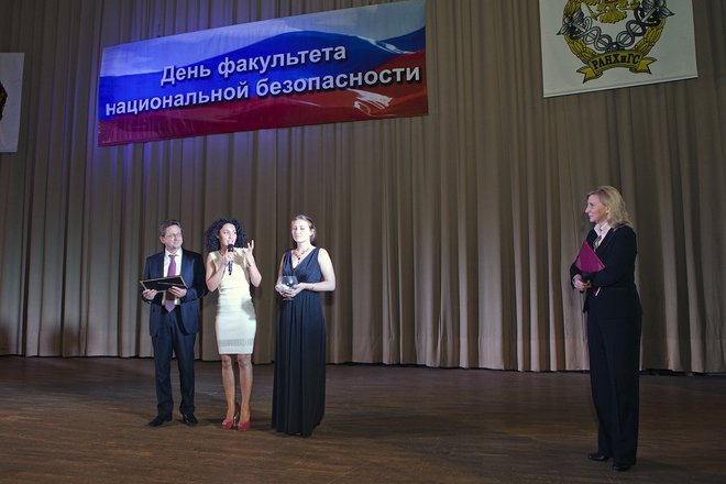 В этот день в актовом зале академии собрались почетные гости, преподаватели и студенты вуза. Прозвучало много пожеланий и добрых слов. С приветственным словом к собравшимся обратились: декан факультета национальной безопасности РАНХиГС, член президиума «ОФИЦЕРОВ РОССИИ» Сергей Смульский и другие члены Президиума нашей организации – председатель Благотворительного совета Сабина Цветкова, начальник Управления организации исполнения наказаний, не связанных с изоляцией осужденных от общества ФСИН России генерал-майор внутренней службы Елена Зарембинская; начальник ОСН «Сатурн» УФСИН России по Москве полковник внутренней службы Борис Николаев; члены Совета «ЖЕНЩИНЫ-ОФИЦЕРЫ РОССИИ» председатель Комиссии по безопасности Мосгордумы Инна Святенко и начальник Правового управления ГУ МВД по Москве Марина Астахова. Ряду преподавателей факультета были вручены дипломы и благодарности, а выпускникам ФНБ – дипломы о высшем профессиональном образовании. Им пожелали применять знания, полученные в академии, на благо России и россиян.