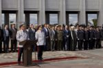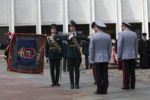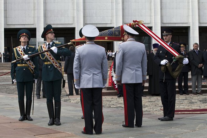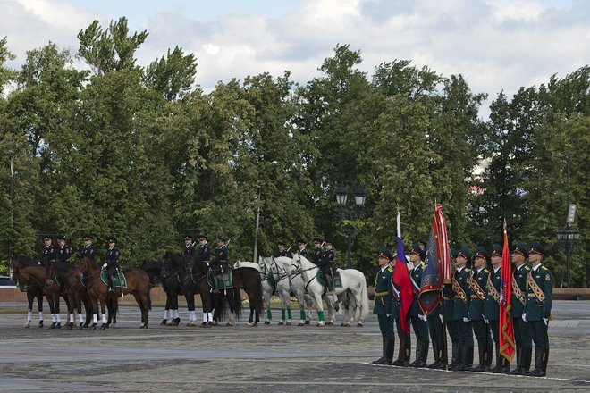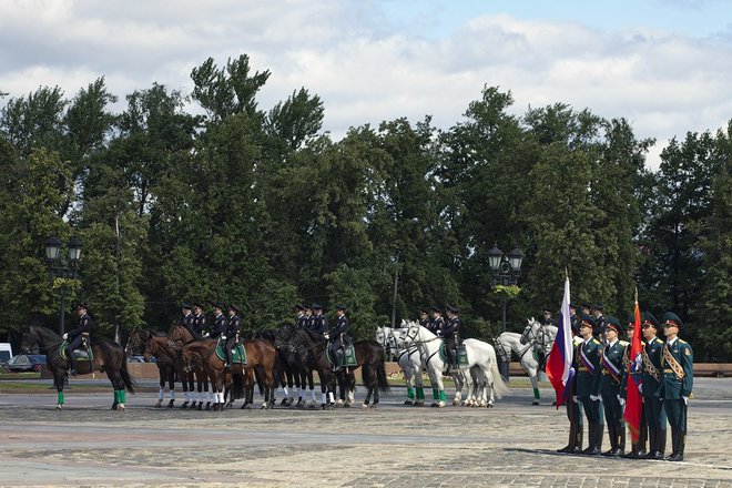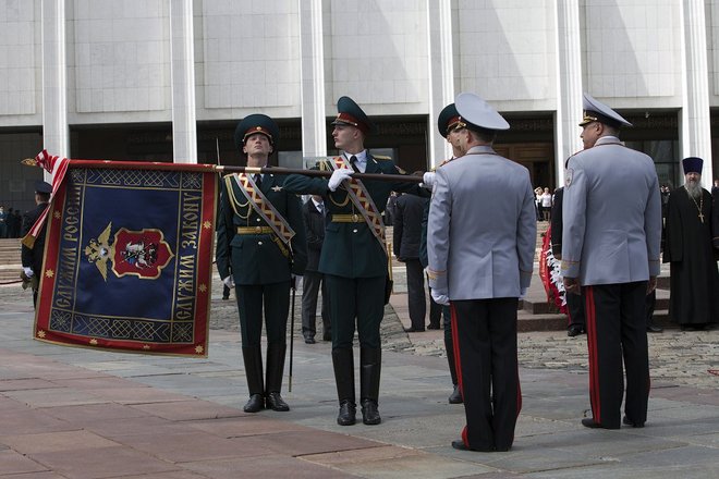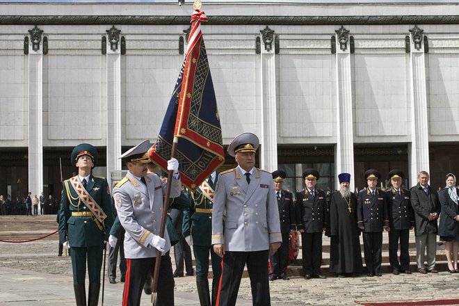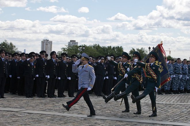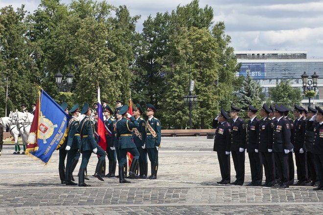 Перед парадным расчетом полицейских министр внутренних дел зачитал грамоту президента Российской Федерации и передал новое знамя в руки начальника ГУ МВД России по г. Москве генерал-лейтенанта полиции Анатолия Якунина, который, в свою очередь, передал знамя знаменной группе.