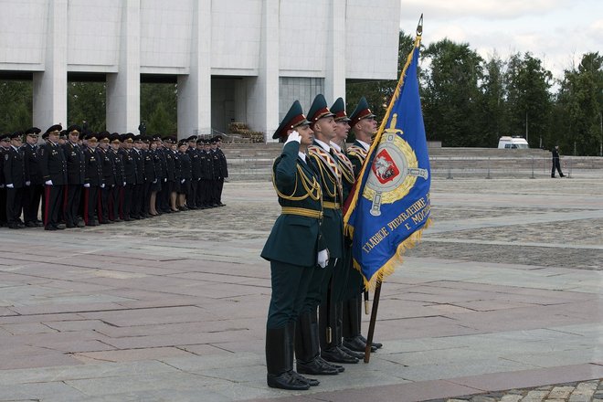 18 июня на Поклонной горе состоялось историческое событие – вручение знамени ГУ МВД России по г. Москве. В торжественной церемонии приняли участие министр внутренних дел России генерал-полковник полиции Владимир Колокольцев, мэр Москвы Сергей Собянин, начальник ГУ МВД России по г. Москве генерал-лейтенант полиции Анатолий Якунин, сотрудники столичной полиции и почетные гости. «ОФИЦЕРОВ РОССИИ» на мероприятии представляли председатель Президиума Антон Цветков и председатель Комиссии по безопасности Мосгордумы, член Совета «ЖЕНЩИНЫ-ОФИЦЕРЫ РОССИИ» Инна Святенко.