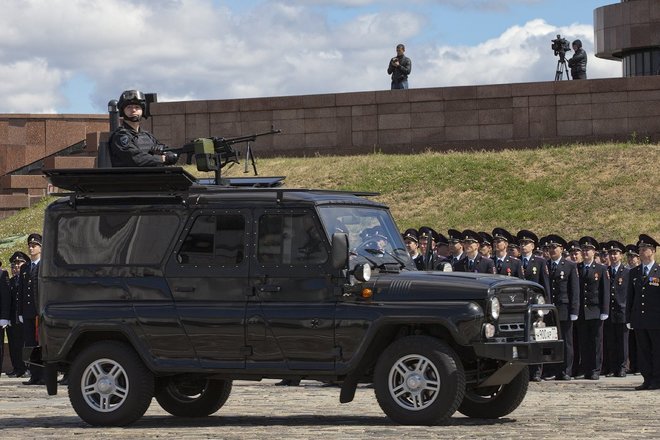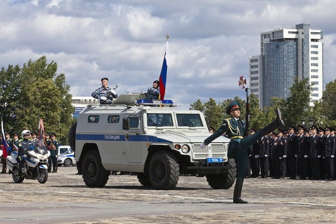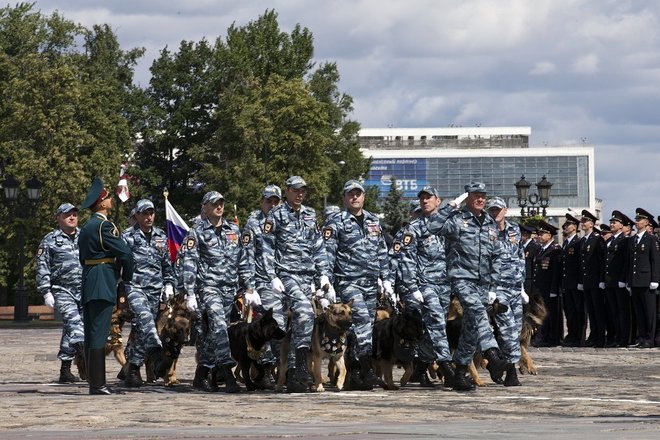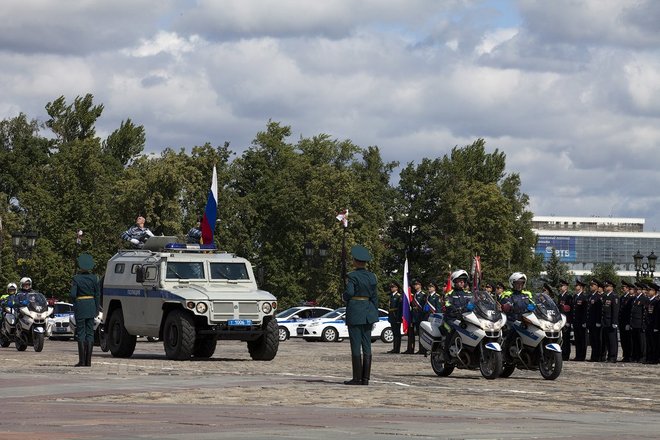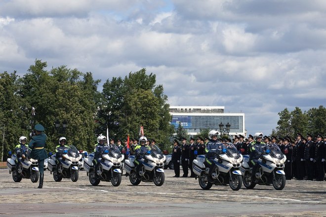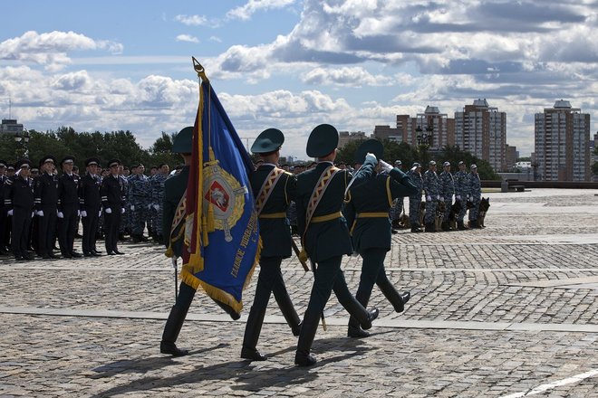 Вот и в этот торжественный день под новым знаменем ГУ МВД России по г. Москве торжественным маршем прошли сотрудники ключевых подразделений московской полиции. Кроме постовых, инспекторов безопасности дорожного движения и бойцов Центра специального назначения в парадный расчет были включены представители 1-го оперативного полка полиции – полицейские кавалеристы, кинологи со своими питомцами и специальная техника, стоящая на вооружении органов внутренних дел столицы, колонну которой возглавила группа мотоциклистов дорожно-патрульной службы.