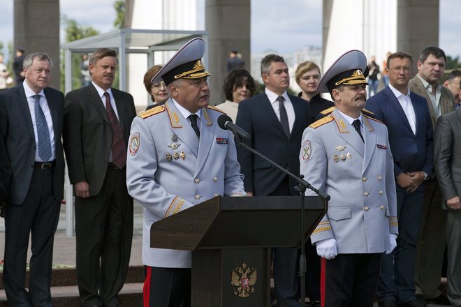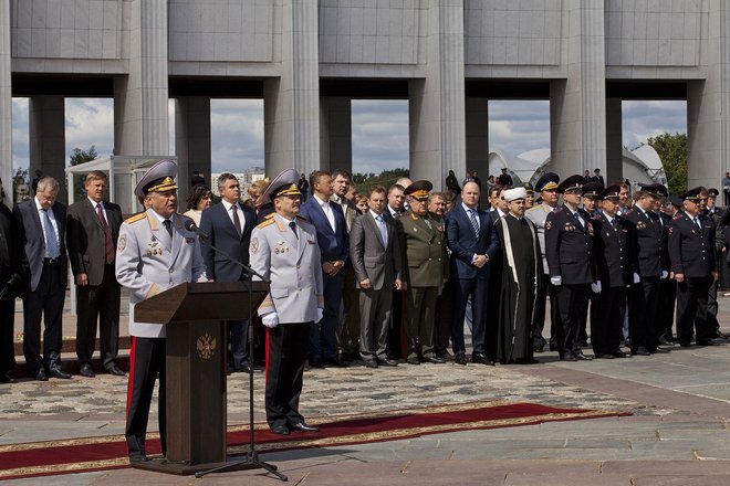 Глава ведомства поздравил со знаменательным событием личный состав московской полиции и сказал, что знамя гарнизона – это, в первую очередь, символ верности: «Это напоминание о героических традициях, славных победах и невосполнимых утратах. О священном долге каждого защитника правопорядка служить своему народу и своему Отечеству».