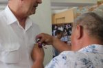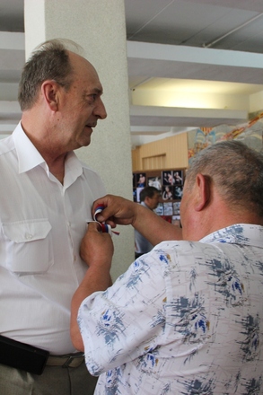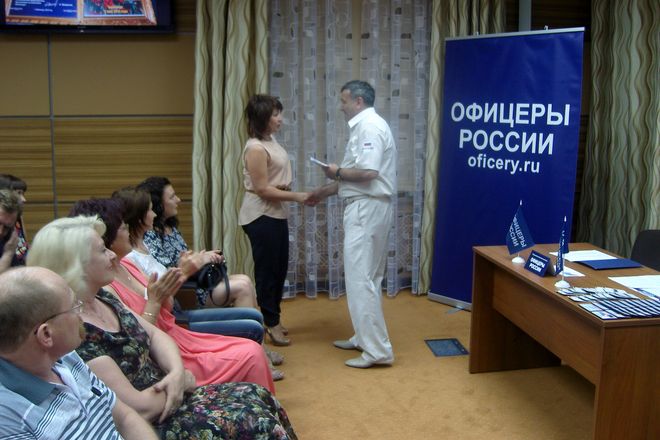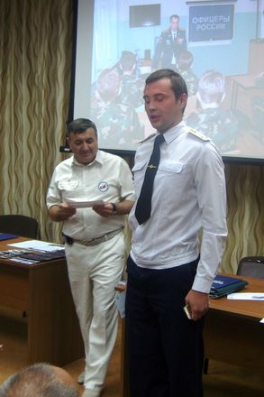 В завершении заседания от имени председателя Президиума «ОФИЦЕРОВ РОССИИ» Антона Цветкова за организацию «космической» поездки флага нашей организации полковнику Евгению Раковскому вручена медаль «За офицерскую честь», за актив участие в проведении праздничных мероприятий более