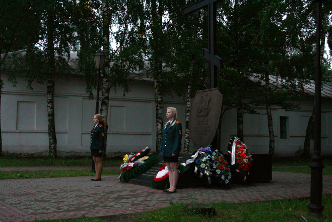 В Череповце десятки людей собрались у поклонного креста, чтобы возложить цветы и почтить память погибших в Великой Отечественной войне.