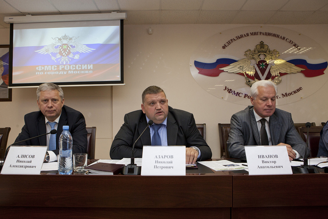 26 июня состоялось заседание Общественно-консультативного совета при УФМС России по Москве с участием руководителей ведомства, представителей органов госвласти, местного самоуправления, научных и деловых кругов, национальных объединений, общественных и диаспоральных организаций. «ОФИЦЕРОВ РОССИИ» представляли члены главного штаба оперативных отрядов нашей организации Алексей Шильвин и Евгений Бурлаковский.