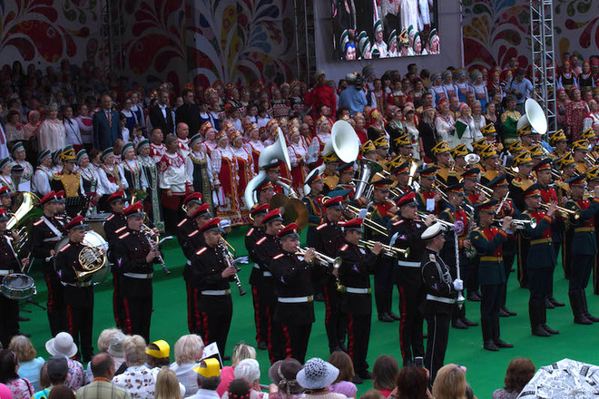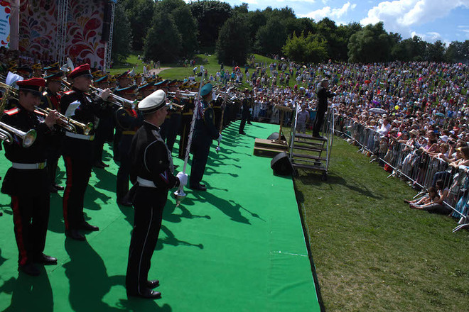 В Москве прошел III Фестиваль славянского искусства «Русское поле-2014». Лучшие оркестры страны под управлением главного военного дирижера генерал-лейтенанта Валерия Халилова сыграли на одной площадке более чем для ста тысяч зрителей.