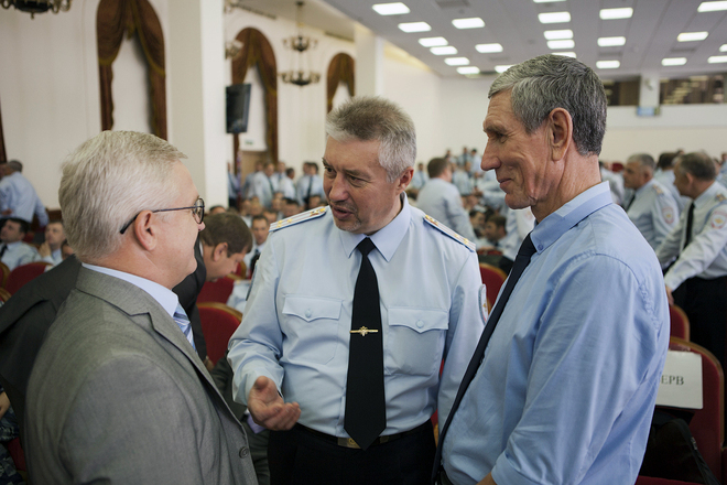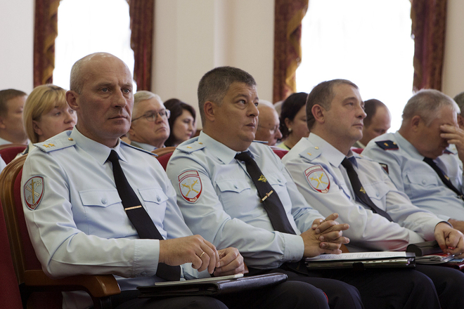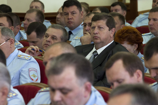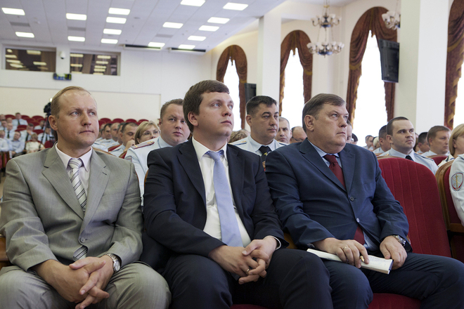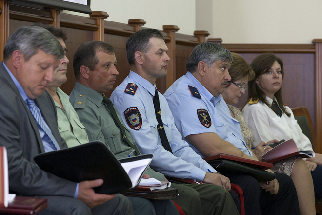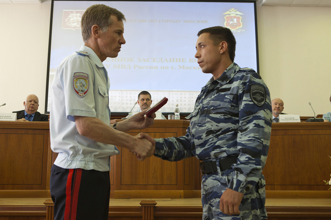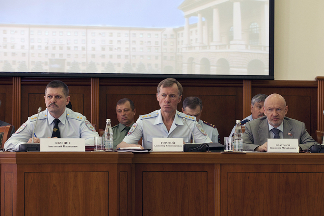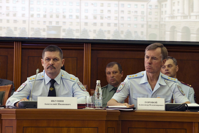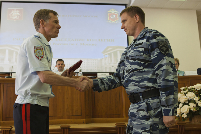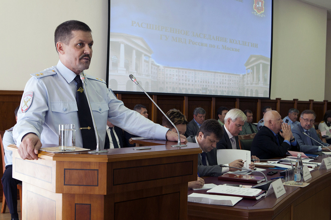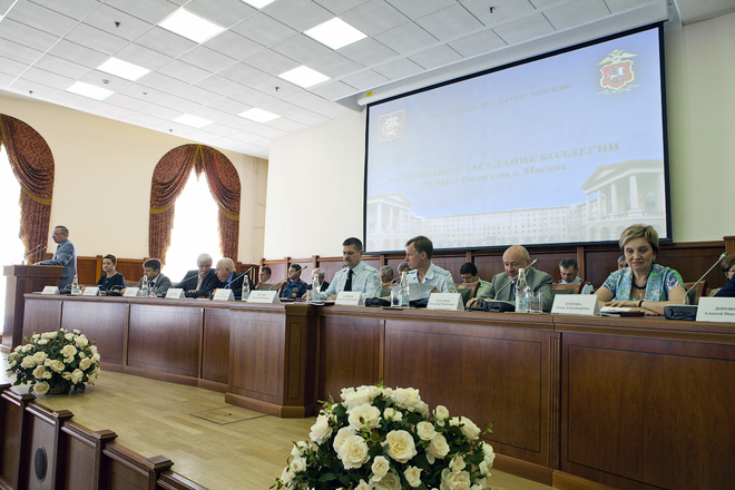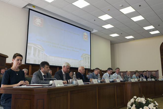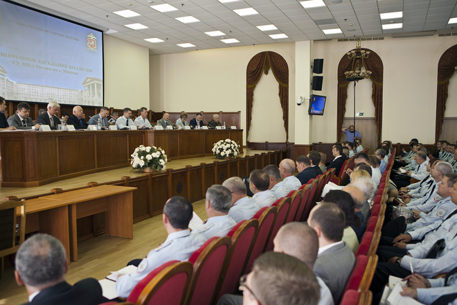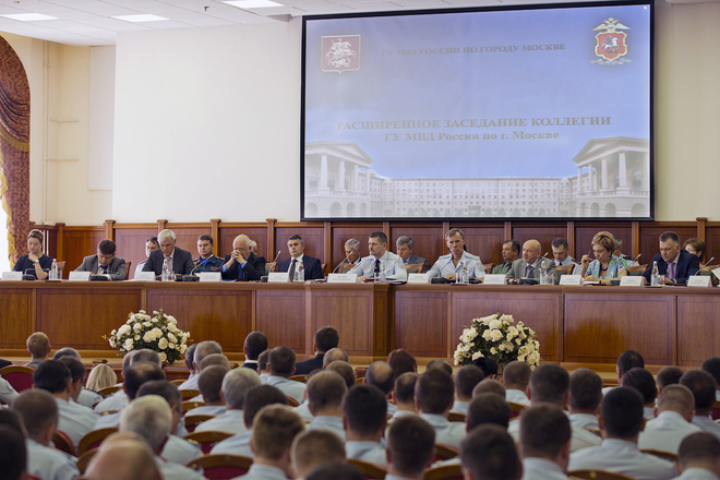 24 июля в ГУ МВД России по Москве прошло расширенное заседание коллегии, на которой были подведены итоги работы за шесть месяцев 2014 года. В работе коллегии приняли участие: первый замминистра внутренних дел РФ генерал-полковник полиции Александр Горовой, начальник столичного главка генерал-лейтенант полиции Анатолий Якунин, полномочный представитель президента РФ в ЦФО Александр Беглов, руководитель Департамента региональной безопасности и противодействия коррупции Москвы Алексей Майоров, председатель Мосгордумы Владимир Платонов, председатель Мосгорсуда Ольга Егорова, представители командования внутренних войск МВД России, прокуратуры, Следственного комитета, УФСКН, члены Общественной палаты РФ – председатель Общественного совета при ГУ МВД по Москве Ольга Костина и зампред Совета, председатель Президиума «ОФИЦЕРОВ РОССИИ» Антон Цветков, а также представители иных правоохранительных ведомств и общественных организаций.