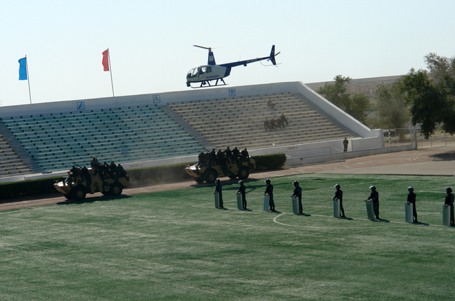 9 августа на стадионе «Десятилетие» для гостей и жителей города состоялись показательные выступления сотрудников спецподразделений. Среди зрителей были члены Президиума регионального отделения – и.о. главы администрации Байконура Анатолий Петренко, начальник УМВД Андрей Желудков, региональный представитель нашей организации на комплексе «Байконур» Петр Майданов.