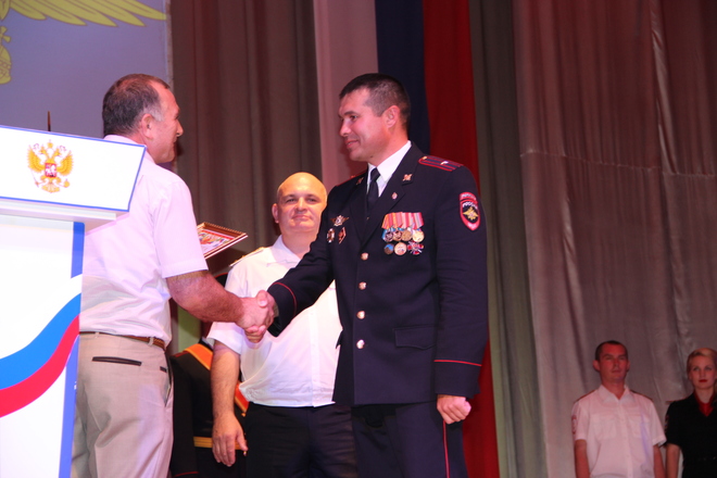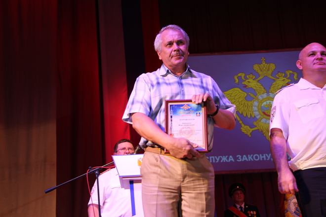 На собрании Петр Майданов и Евгений Раковский вручили награды нашей организации лучшим офицерам полиции. После собрания состоялся большой праздничный концерт.