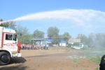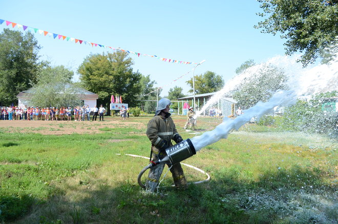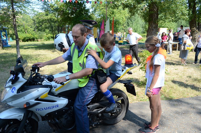 По окончании эстафеты свое умение продемонстрировали пожарные расчеты, которые задействовали современную технику пожаротушения. Кроме того, сотрудники ГИБДД прокатили на новейшем мотоцикле детей из команды-победителя.