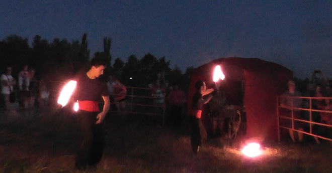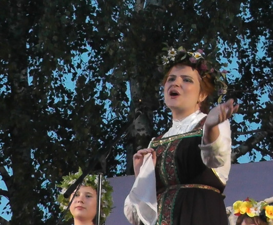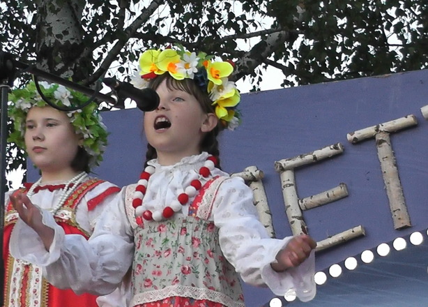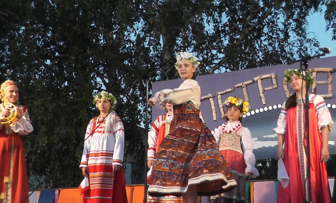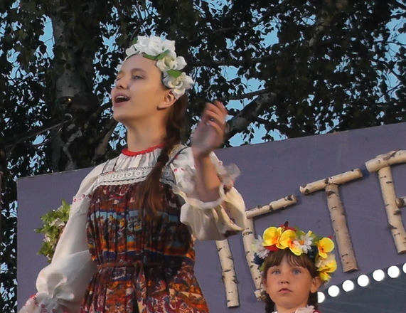 К девяти вечера праздник достиг своей кульминации, и на сцене возникли скоморохи. Прокричав приветствия, они пригласили на сцену вокально-танцевальный ансамбль «Русские узоры» из деревни Большое Грызлово. Затем появились ребята в косоворотках и поддевках – хореографический ансамбль «Инсайт» (Пущино), следом – молодежный ансамбль народной песни Наталии Федоровой «Серпуховское подворье», которые являются членами отделения «ОФИЦЕРОВ РОССИИ» городского округа Серпухов.