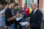 На слет приехала представительная делегация «ОФИЦЕРОВ РОССИИ». В нее вошли члены Президиума центрального аппарата: генерал-лейтенант полиции в отставке Александр Михайлов; Герой России, космонавт-испытатель Сергей Нефедов и ветеран спецподразделения «Альфа» Игорь Шевчук; а также руководитель исполкома регионального отделения нашей организации в Московской области Юрий Чмутин и член президиума регионального отделения Москвы, олимпийский чемпион Сергей Голубев. Они приняли участие в заседании круглого стола, который проходил после спортивной части. Выступающие говорили о необходимости развития патриотической работы среди молодежи и проведения подобных слетов, в том числе и при поддержке «ОФИЦЕРОВ РОССИИ».
