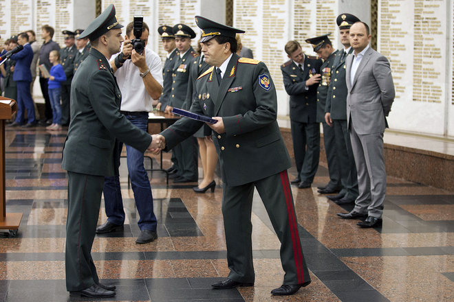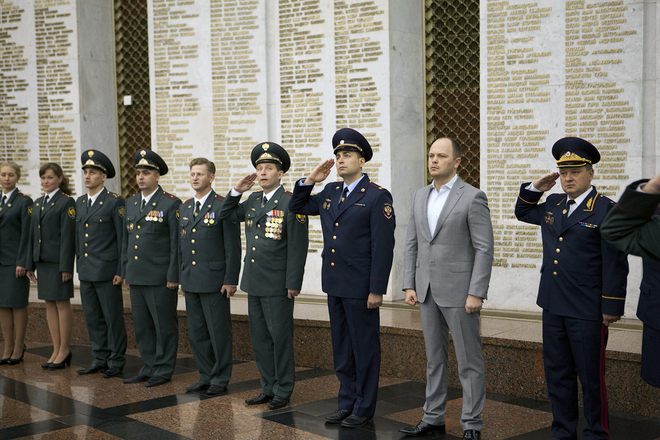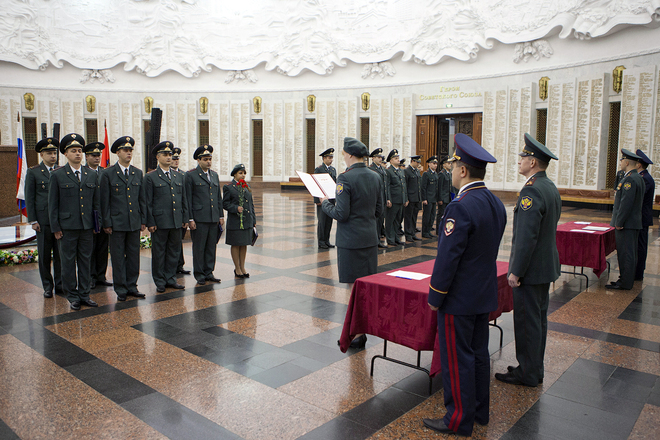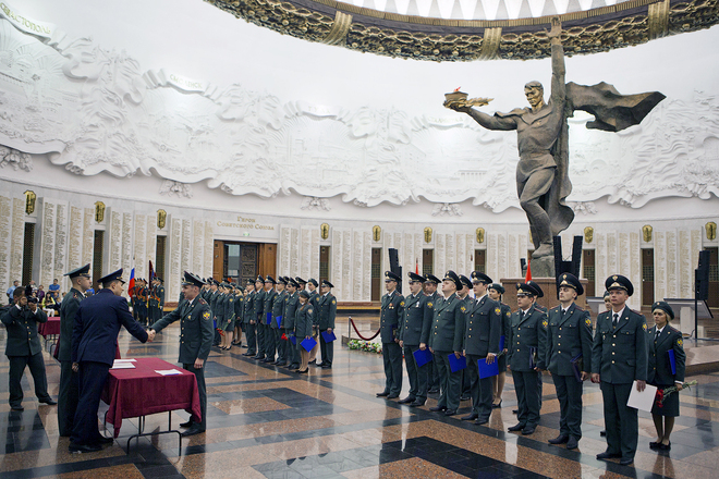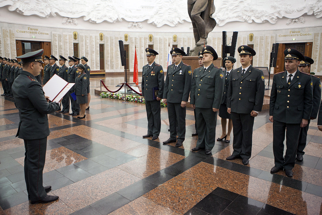 Молодые офицеры в этом святом для каждого россиянина месте поклялись исполнять Конституцию и законы Российской Федерации, достойно переносить тяготы службы, быть честными и мужественными.