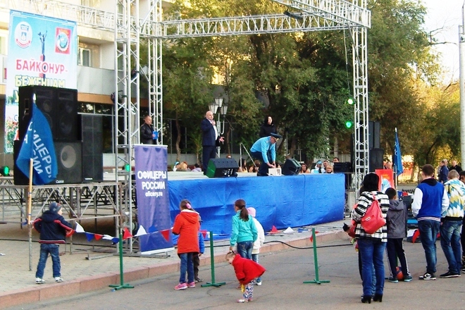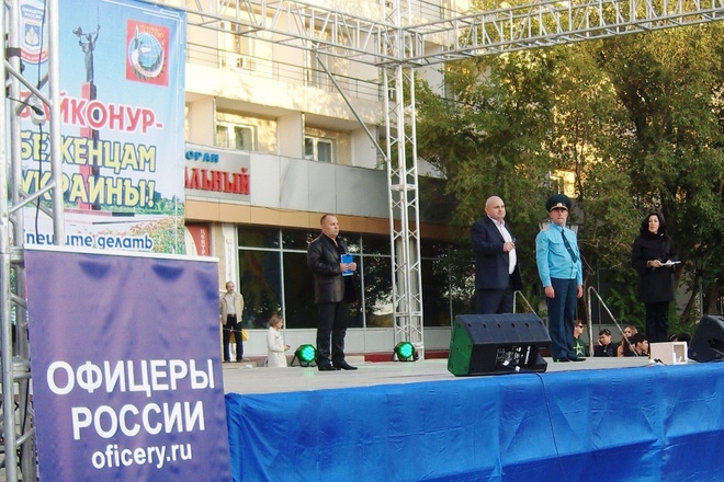 По инициативе регионального отделения «ОФИЦЕРОВ РОССИИ» по комплексу Байконур при поддержке городской администрации и местного отделения «Боевого братства» 20 сентября на Центральной площади города – столицы легендарного космодрома прошла благотворительная общегородская акция – концерт «Байконур – беженцам Украины».