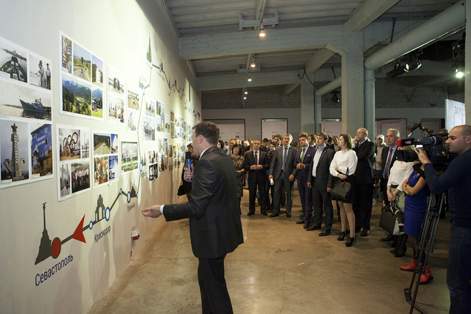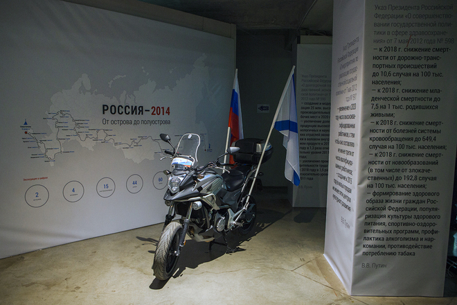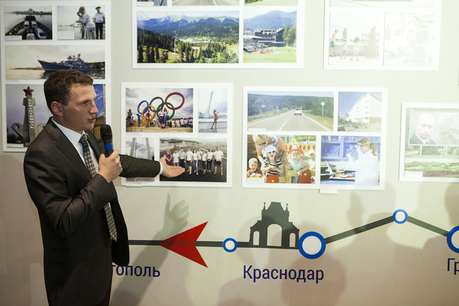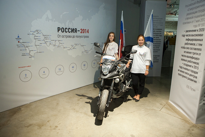 Выставка «Россия-2014: от острова до полуострова» состоит из 300 снимков, которые рассказывают о жизни большой страны: это портреты россиян, ставших героями экспедиции, картины тихих будней глубинки и кипучей жизни городов.