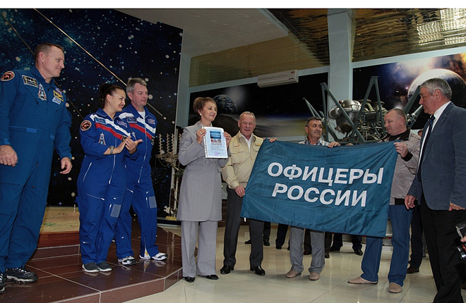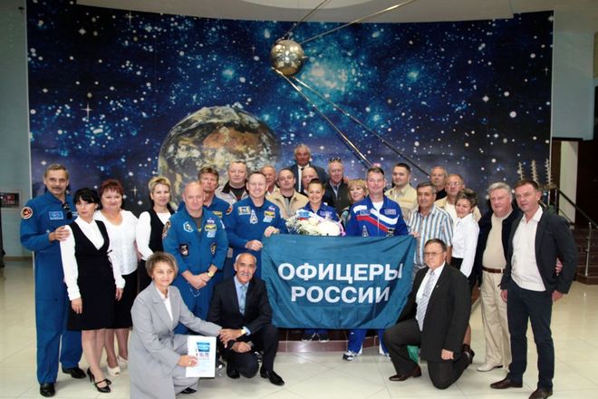 Региональный представитель организации Петр Майданов в присутствии основного и дублирующего экипажей 41/42 очередной длительной космической экспедиции на МКС (что само по себе редкий случай), летчика-космонавта, Героя Российской Федерации, заместителя начальника ЦПК по подготовке космонавтов – командира отряда космонавтов ЦПК генерал-майора Валерия Корзуна, членов Президиума регионального отделения руководителя запусков по пилотируемой программе РКК «Энергия» Владимира Томчука и первого заместителя директора филиала ФГУП «ЦЭНКИ» Евгения Раковского передал флаг «ОФИЦЕРОВ РОССИИ, побывавший в космосе по совместной договоренности руководителя ФКА Олега Остапенко и председателя Президиума организации Антона Цветкова, на хранение в музей.