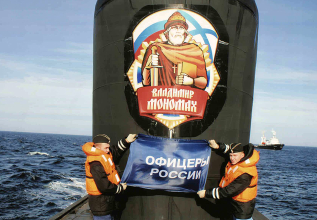 Флаг организации «ОФИЦЕРЫ РОССИИ» был взят на борт «Владимира Мономаха». К-551 – это российская атомная подводная лодка стратегического назначения, относящаяся к 4-му поколению. Спущена на воду она была 30 декабря 2012 года, но пока находится на стадии испытаний. Передача крейсера Военно-морскому флоту РФ запланирована на 10 декабря 2014 года.