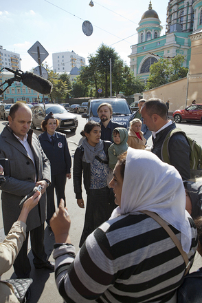 Мобильный патруль выявил несколько женщин-попрошаек с несовершеннолетними детьми у Елоховского собора. Инспекторы по делам несовершеннолетних забрали их в отделение полиции.