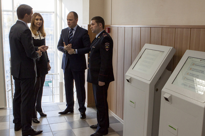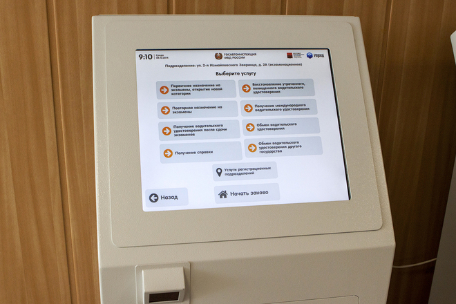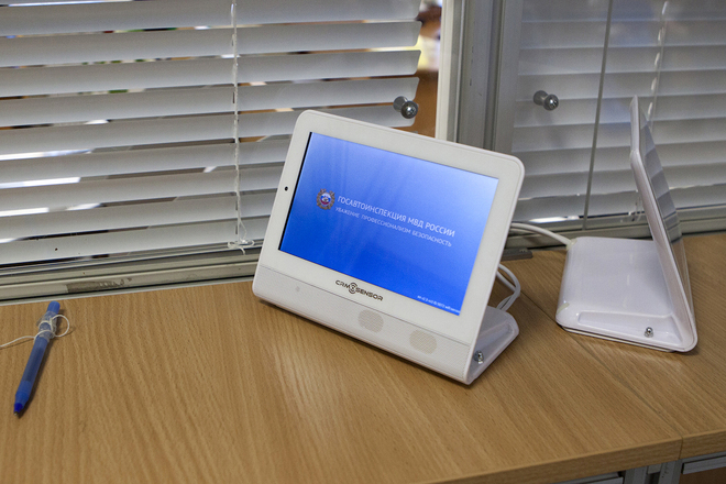 Есть также несколько нововведений. Например, у окошка для приема документов стоит устройство, на котором можно незамедлительно выставить оценку за качество работы сотрудника. В зале для сдачи теории, прозрачная стена. Родные и близкие экзаменуемых могут свободно наблюдать за процессом. По новой договоренности в процедуре проверки будут принимать участие наши представители. Очень удобные информационные терминалы стоят в холле. Можно осуществить запись и получить информацию.