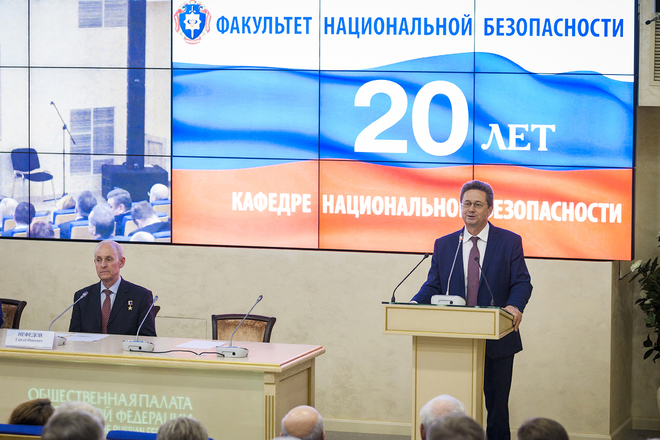 10 октября в Общественной палате состоялось торжественное собрание, посвященное 20-летию кафедры национальной безопасности Российской академии народного хозяйства и государственной службы при Президенте РФ.